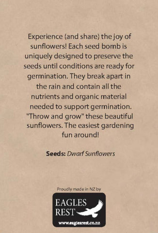 sunflowers! Each seed bomb is uniquely designed to preserve the seeds until conditions are ready for germination. They break apart in the rain and contain all the